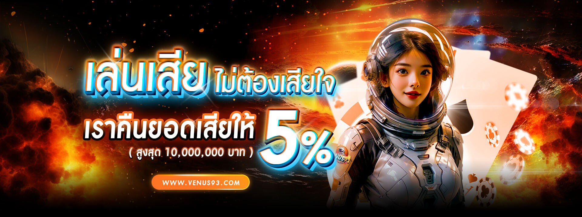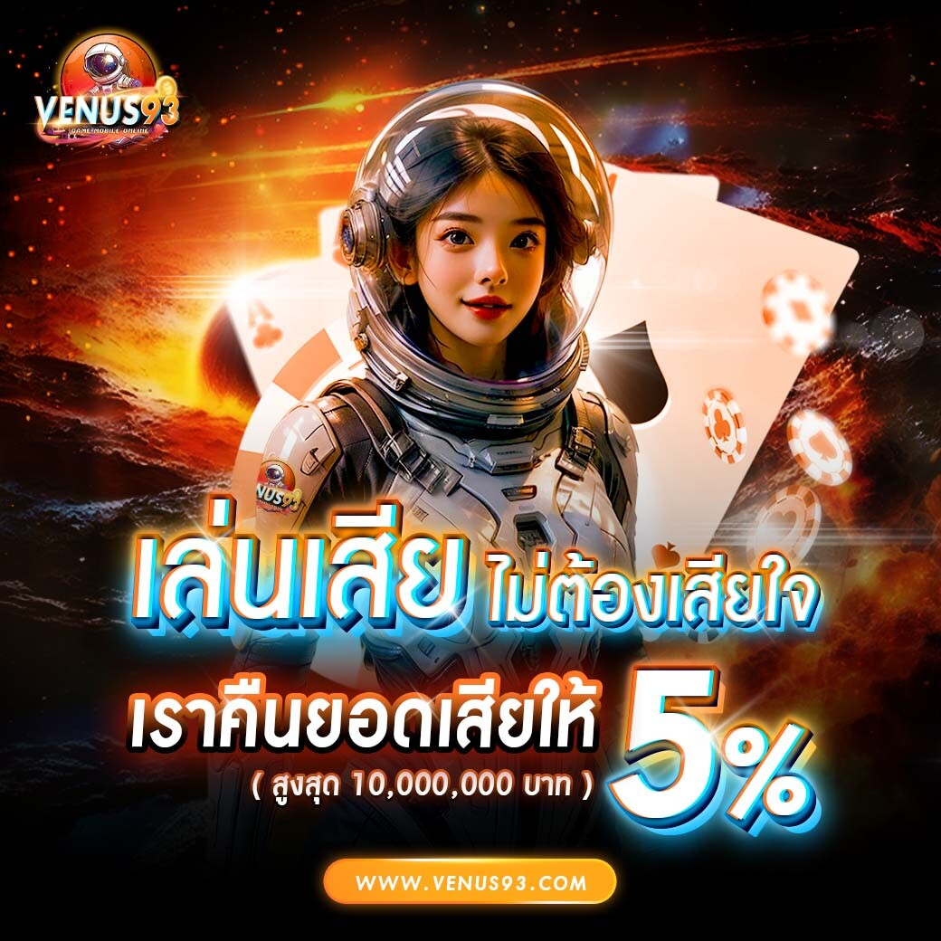 สำหรับสมาชิกปัจจุบัน ทาง venus93 ก็ไม่ทอดทิ้งนะครับ มีโปรโมชั่นคืนยอดเสีย 10% ทุกสัปดาห์ โดยไม่มีเงื่อนไขยอดเทิร์นโอเวอร์ให้ยุ่งยาก แถมยังมีโบนัสเติมเงินรายวันอีก 5% ทุกครั้งที่ฝากเงิน ยิ่งเล่น ยิ่งได้รับผลประโยชน์กลับคืนมา
